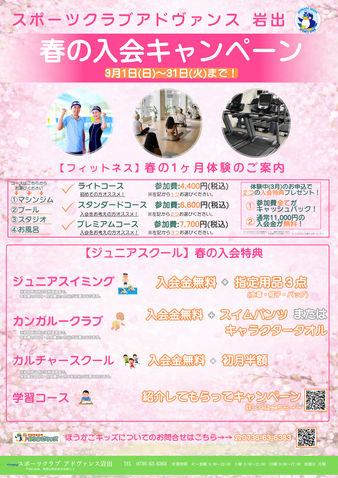 20258/27 ご入会キャンペーン 事業所 期間 詳細 カツラギ 3月の入会キャンペーン コチラ むそた (3月限定)春の入会キャンペーン ジュニアスイミング ・ フィットネス 岩出 3月 春の入会キャンペーン コチラ <<体験お申込みはこちらから!>> お知らせ , 岩出 , キャンペーン