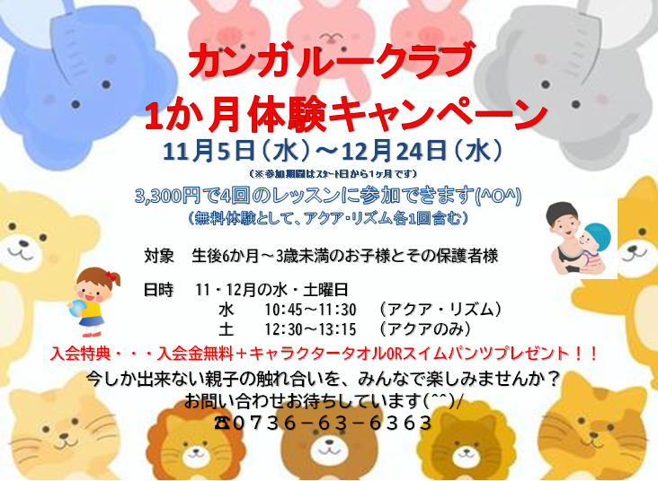 202510/23 岩出:カンガルークラブ(親子クラス)1ヶ月体験のお知らせ♪ 拡大画像はコチラをクリック↓ https://advance-sports.co.jp/wp/wp-content/uploads/2025/10/dc5accc433682fa684311d9d0fe6bc1b.pdf お知らせ