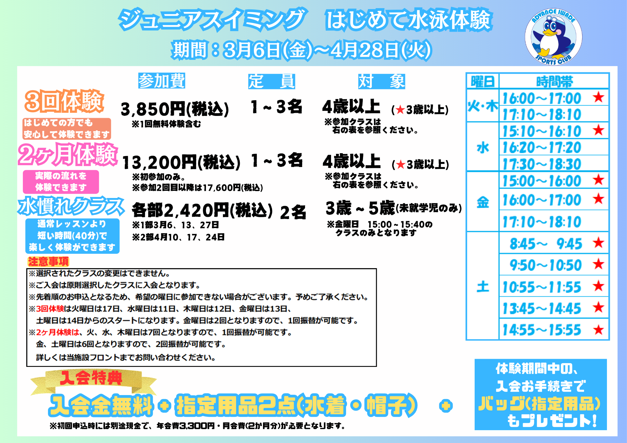 岩出:春のはじめて水泳体験のお知らせ