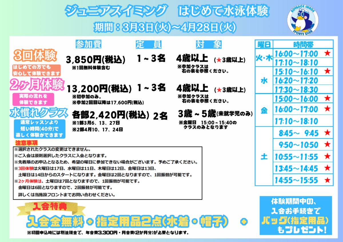 岩出:春のはじめて水泳体験のお知らせ