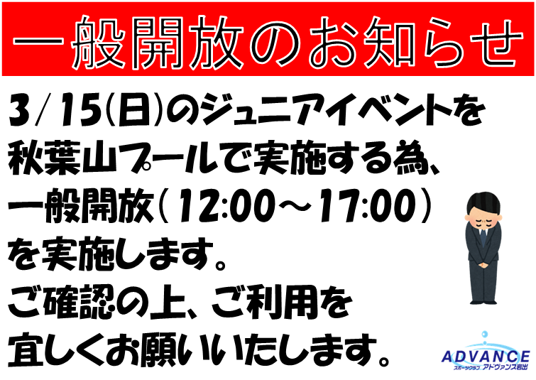 岩出:一般開放についてのお知らせ