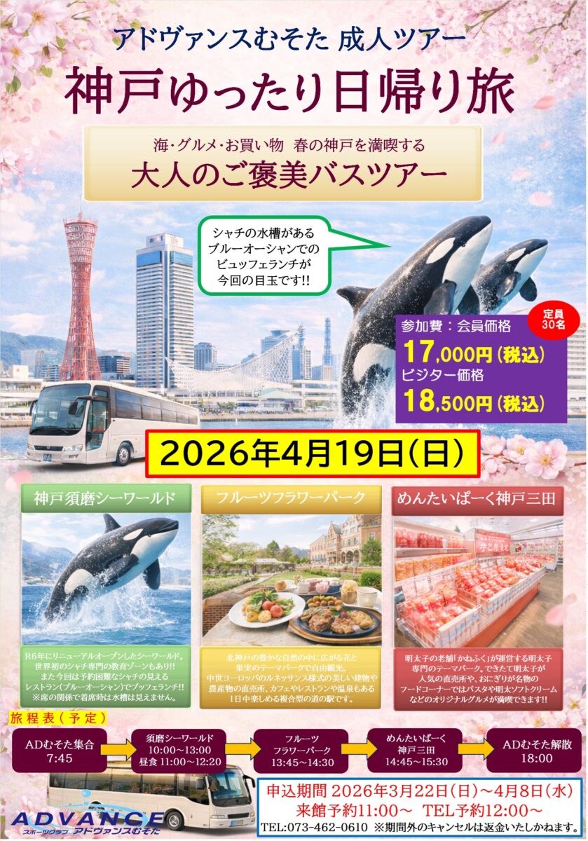 【むそた】春の成人ツアー *神戸ゆったり日帰り旅*